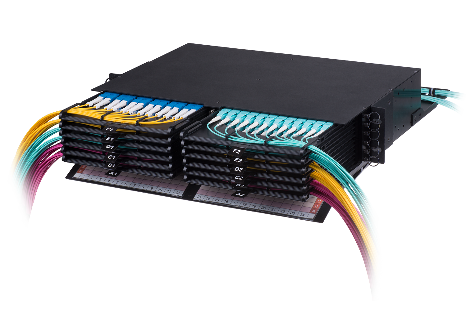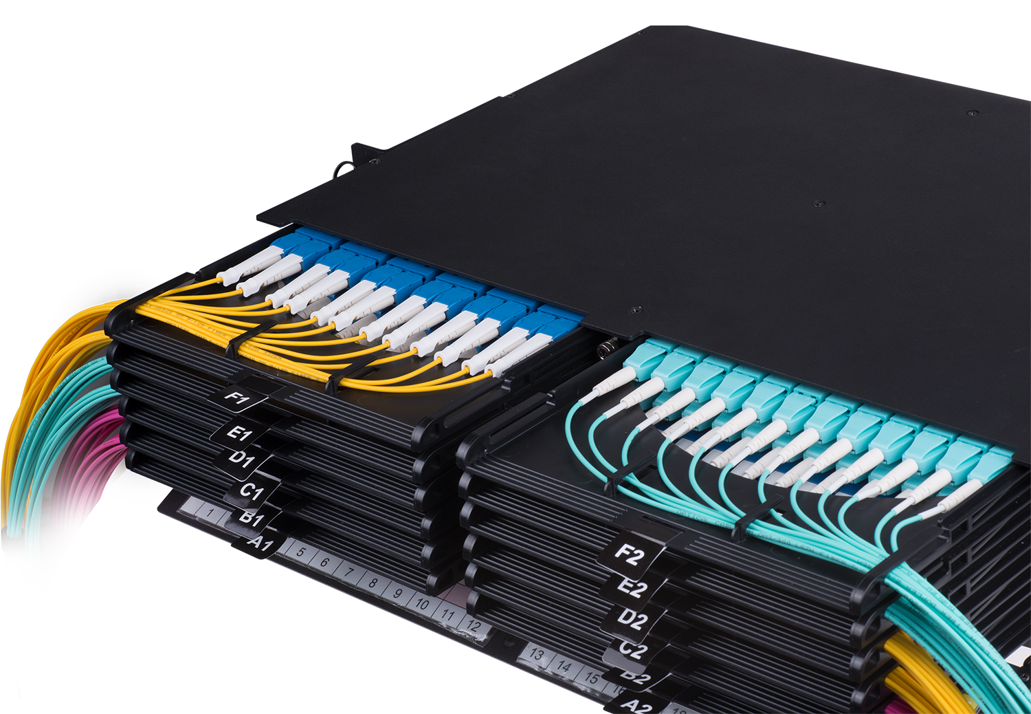 | Область применения | ориентированы на построение кабельных систем с высокой плотностью портов, информационной проводки ЦОД, крупных корпоративных систем, комплексов ядра сети |
