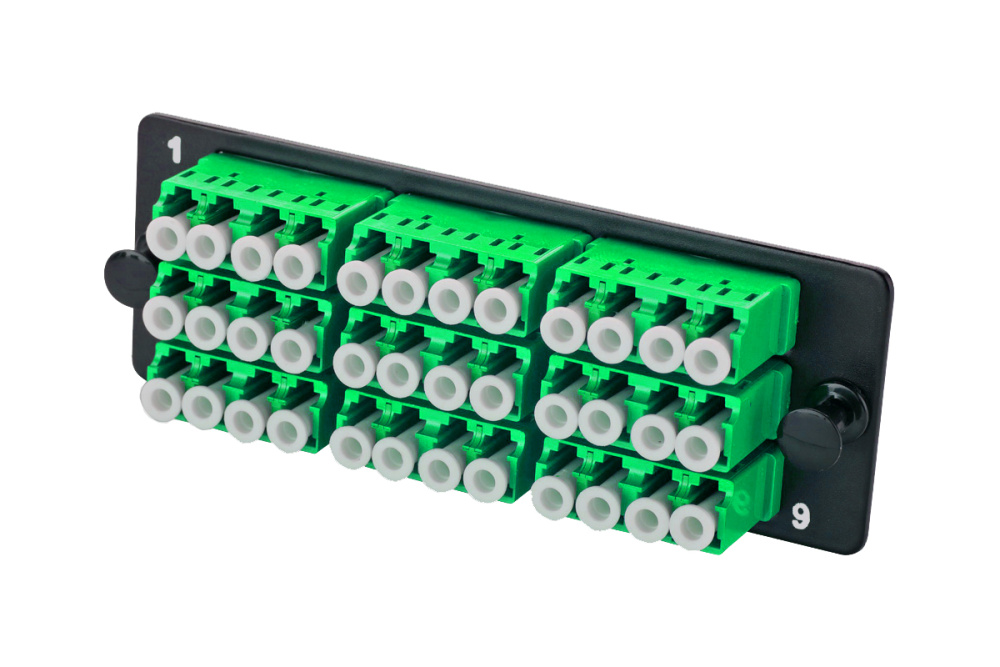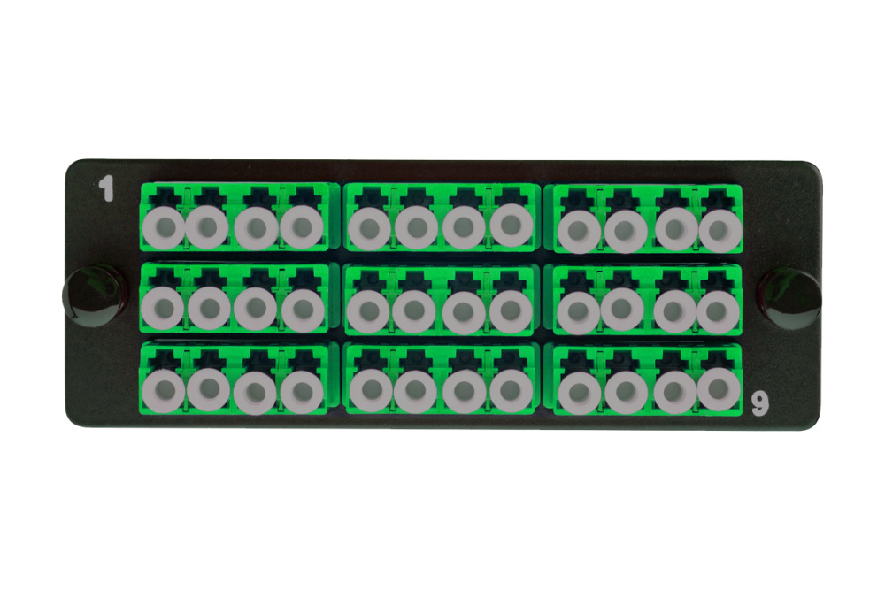 Комплект планка Q-SLOT с 9 адаптерами квадро LC OS2, монтажные шнуры, APC, КДЗС
