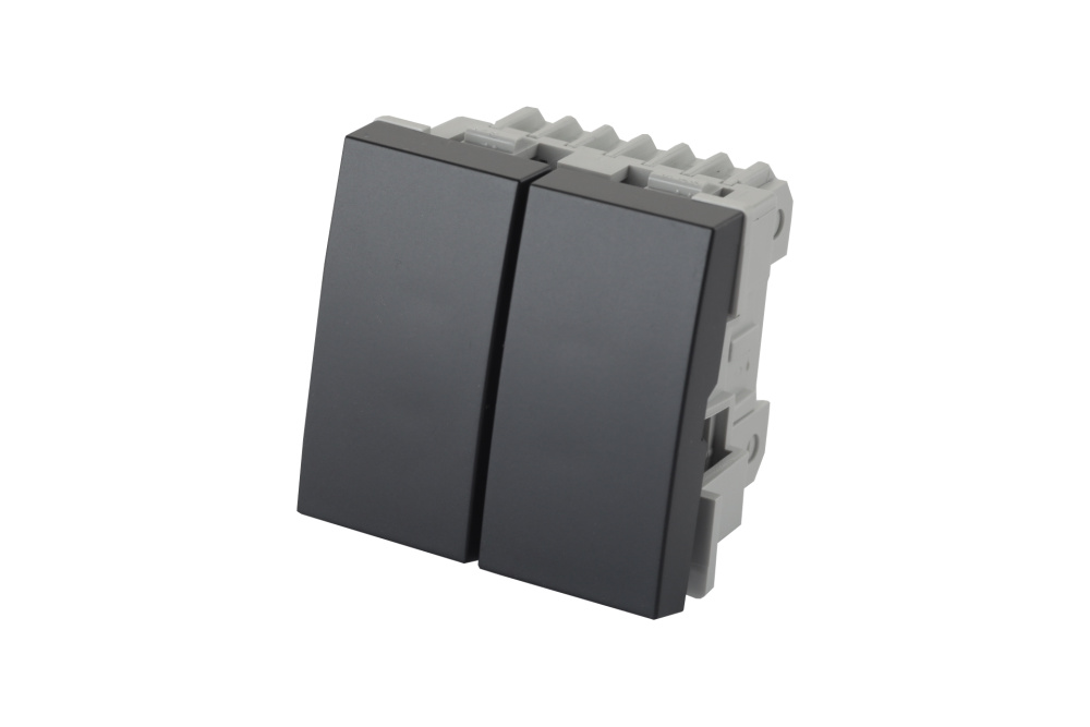 Выключатель двухклавишный 45 × 45 мм 10 A – 250 В, графитовый черный