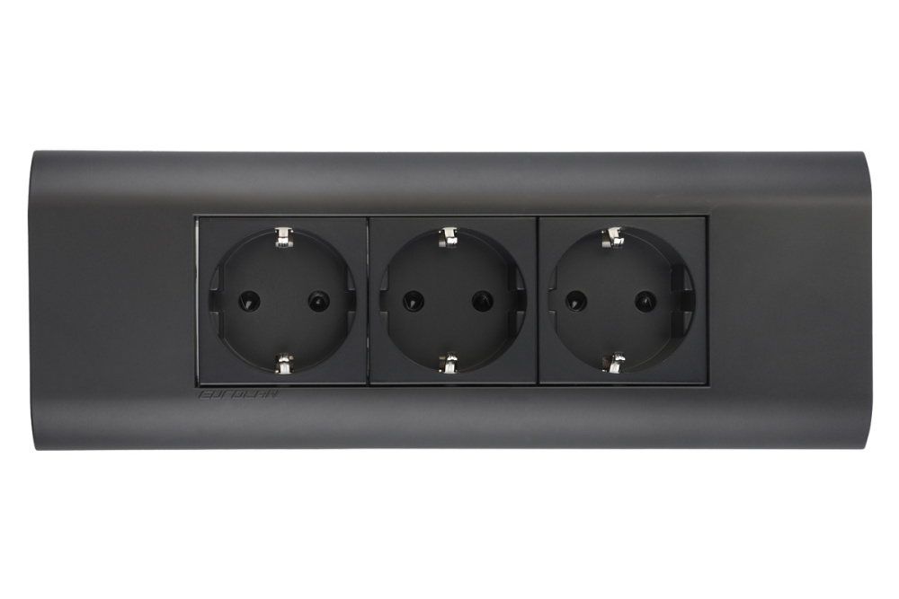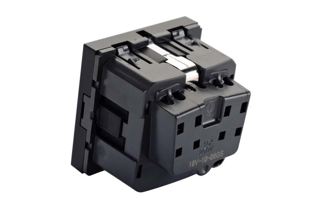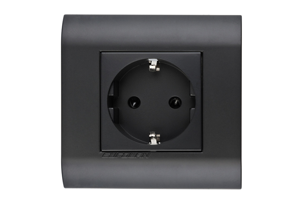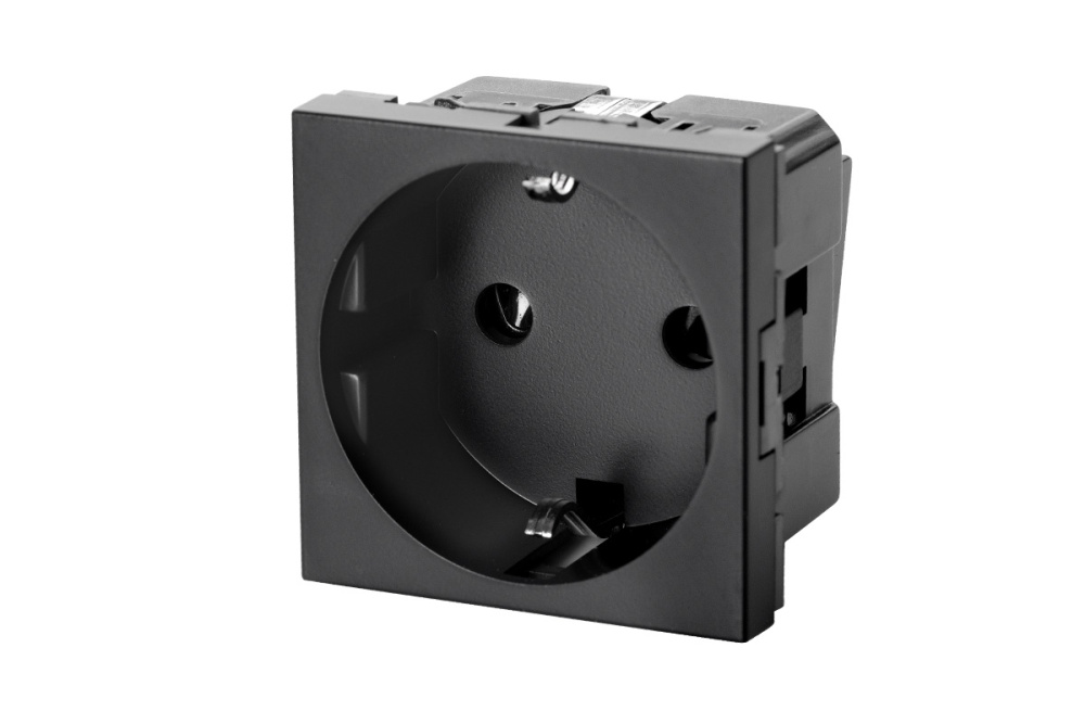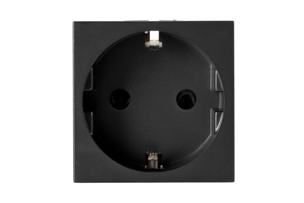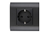 Розетка 2P+E немецкий стандарт 45 × 45 мм, с защитными шторками, графитовый черный