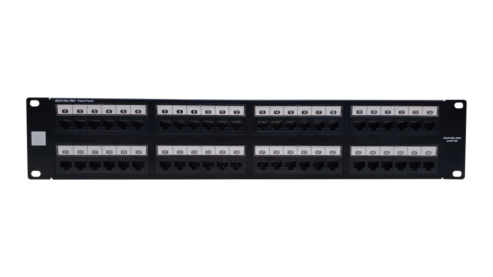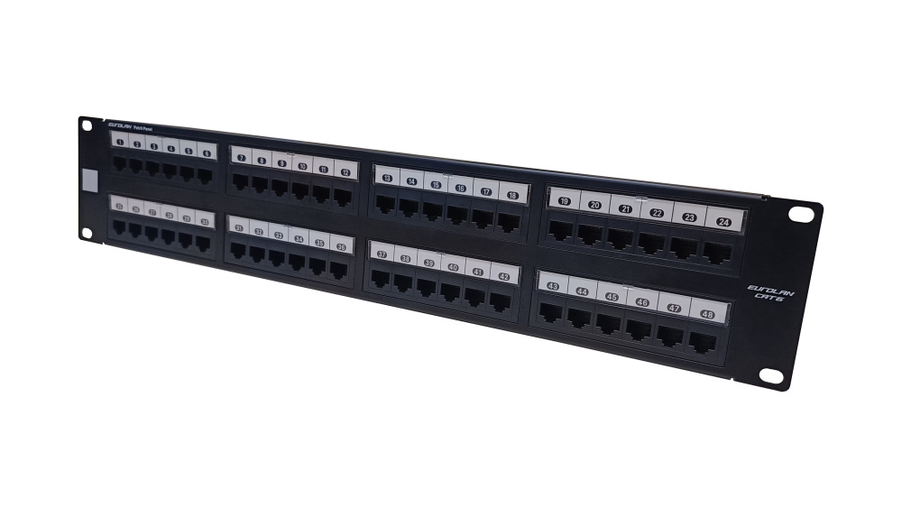 Коммутационная панель 19” моноблочная, категория 6, UTP, 2U, 48 портов, черный
