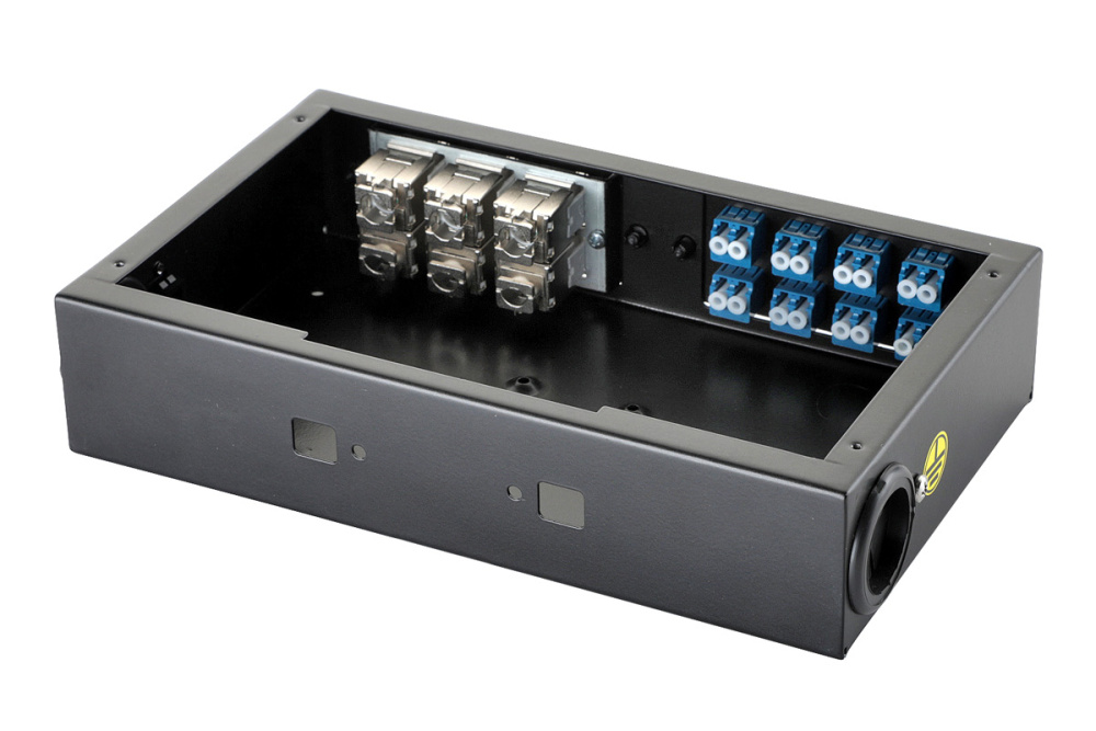 | Особенность конструкции | отверстие для установки MTP-адаптера в боковой стенке; фиксаторы внешней оболочки кабеля - скобы под стяжки |