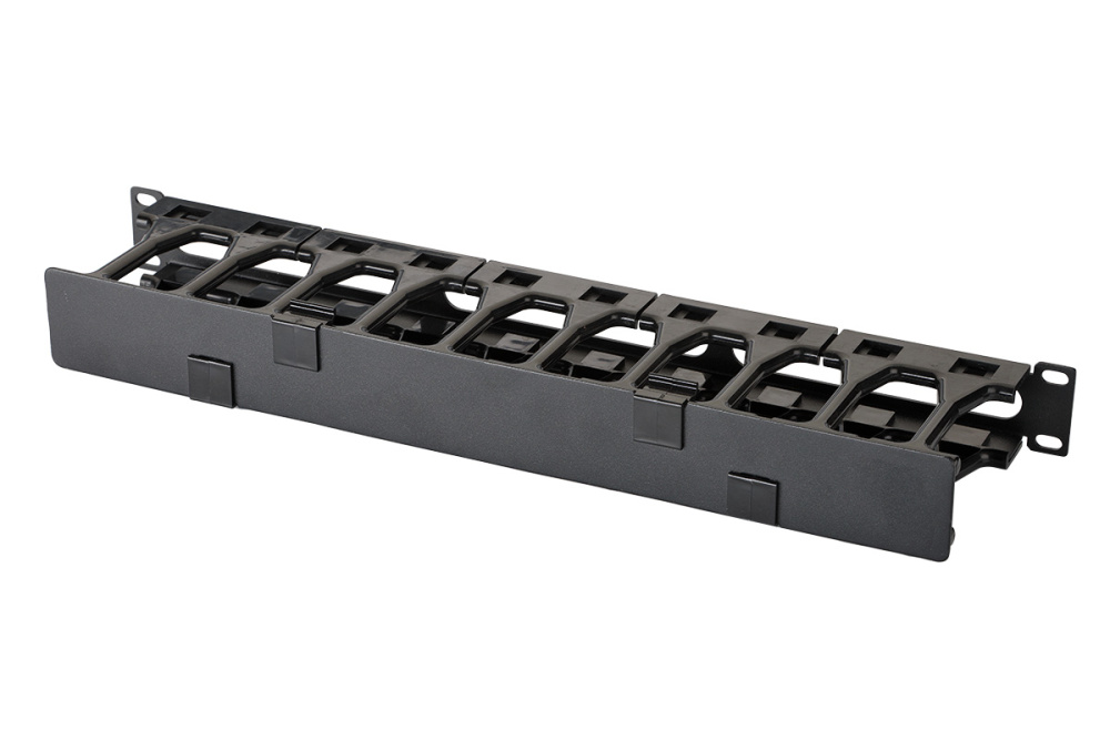 Горизонтальный организатор повышенной емкости 19", 1U, с крышкой, черный