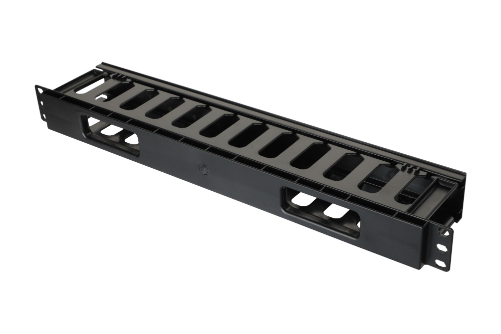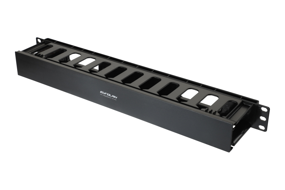 Горизонтальный организатор 19", 1U, слотовый с крышкой, черный