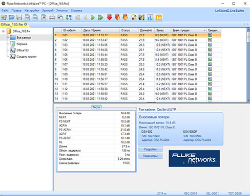 - Результаты тестирования линий согласно схемам стационарная линия (permanent link) или канал (channel) по ISO/IEC 11801 (в исходном формате кабельного анализатора).
